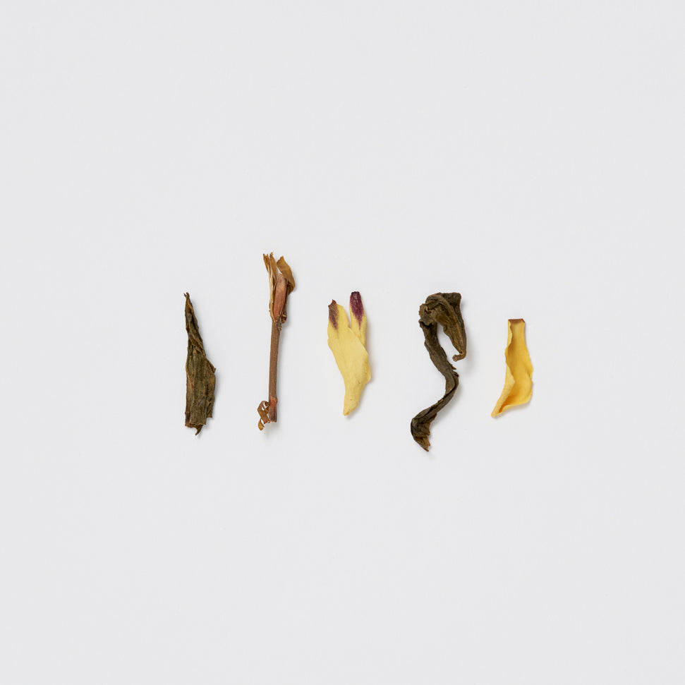 차나무잎[호지차] 80%(제주), 목련꽃잎[목련꽃잎차] 20% (전남 보성) |